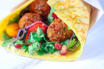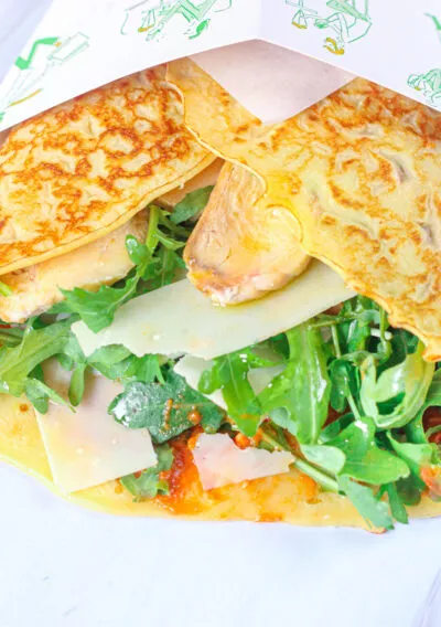 A fluffy crêpe with French fresh ingredients, rich in eggs, which gives a light texture…